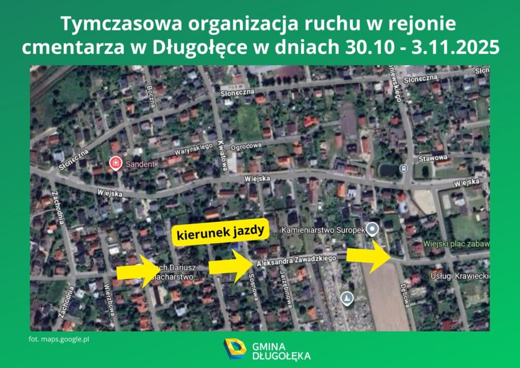 Tymczasowa organizacja ruchu w Długołęce w dniach 30.10 – 3.11.2025 r.